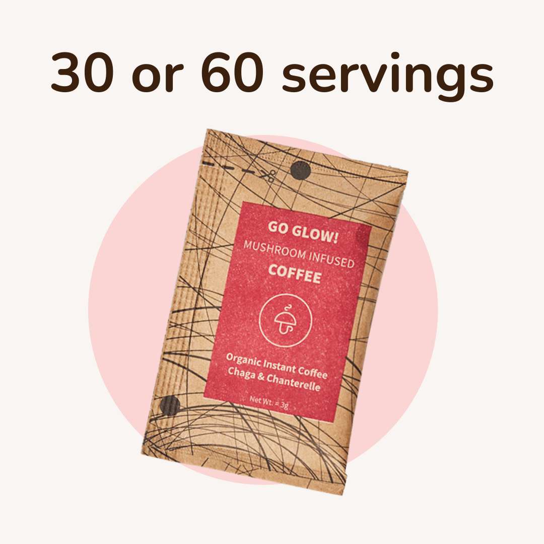Go Glow 10/30/60 Servings – organic instant coffee with Chaga and Chanterelle