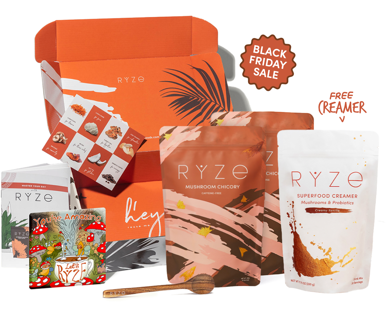 Our blend. enhanced with functional mushrooms and MCT. delivers calm energy that promotes focus. productivity. adrenal health. and … yes. happiness. Our ingredients have been studied for thousands of years and found to enhance brain function. boost immunity. and give balanced energy that keeps you shining all day long. All with zero caffeine.