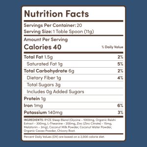 RYZE Mushroom Hot Cocoa. a nighttime treat that marries the magical calming powers of reishi with the snooze-inducing benefits of L-theanine. glycine and melatonin for a blend that helps you unwind at night and wake up refreshed in the morning. Blended with cacao powder for powerful antioxidants and coconut water for hydration. you’ll start a better day the night before.