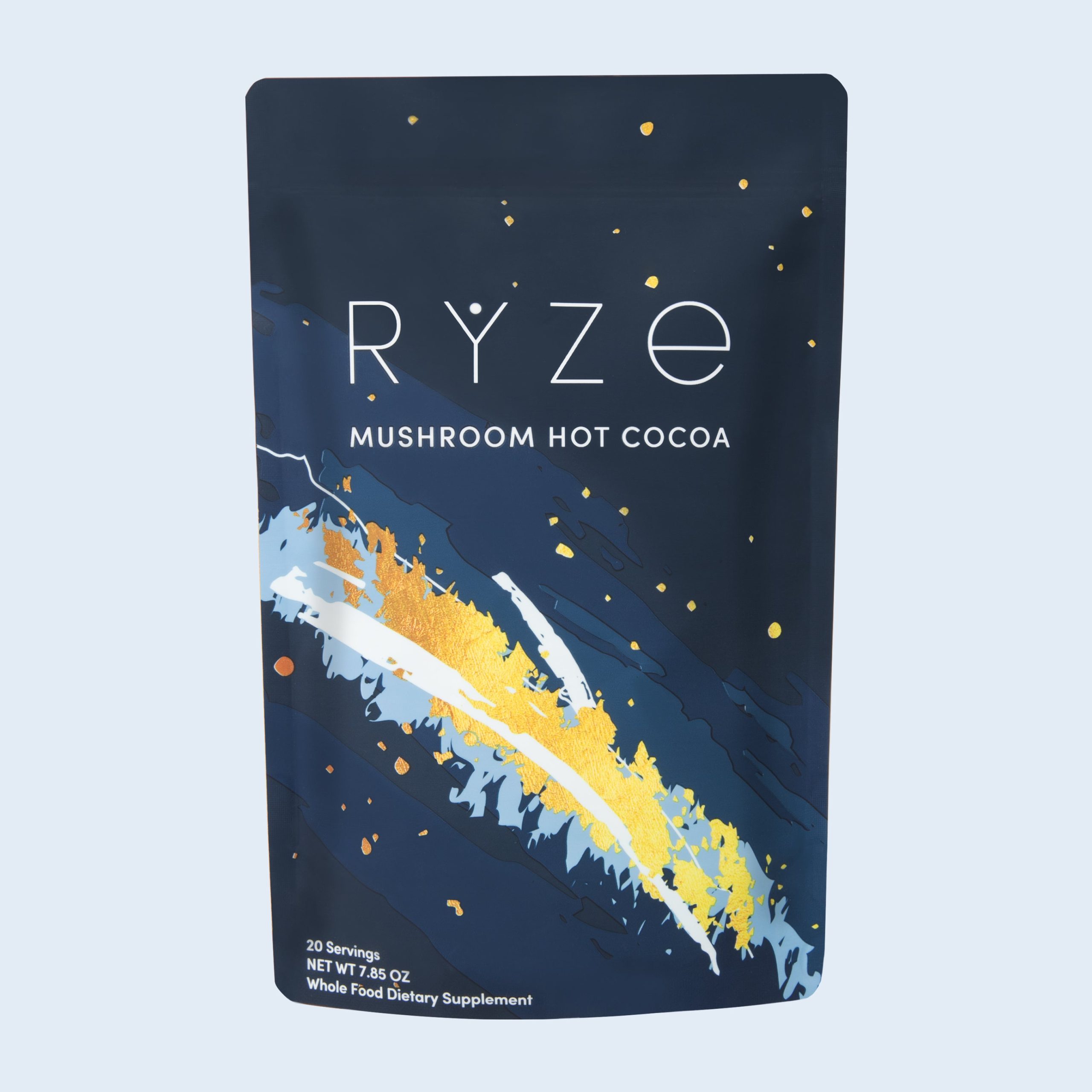 RYZE Mushroom Hot Cocoa. a nighttime treat that marries the magical calming powers of reishi with the snooze-inducing benefits of L-theanine. glycine and melatonin for a blend that helps you unwind at night and wake up refreshed in the morning. Blended with cacao powder for powerful antioxidants and coconut water for hydration. you’ll start a better day the night before.